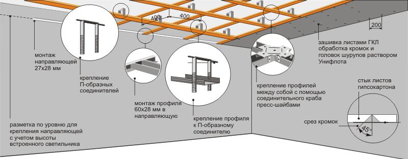 Как правильно установить каркас для отделки потолка Перед началом установки, важно определить высоту конструкции. Это поможет избежать ненужного времени на переделки.