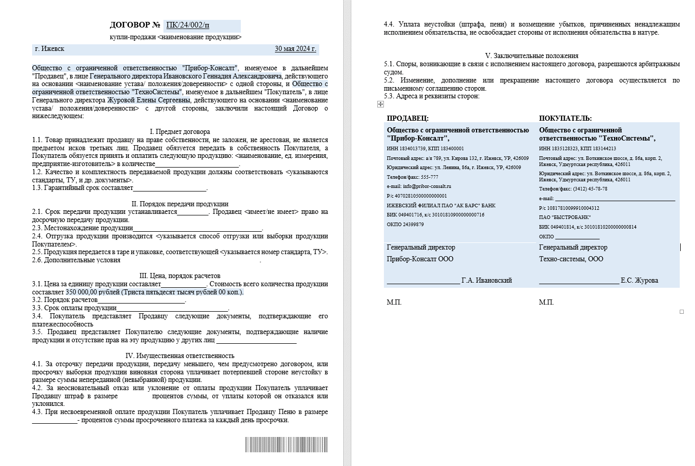 Включите пункт о порядке внесения изменений в контракт. Это актуально, если в процессе работы возникают новые обстоятельства или пожелания заказчика. Четкое оформление таких изменений позволит избежать недопонимания.
