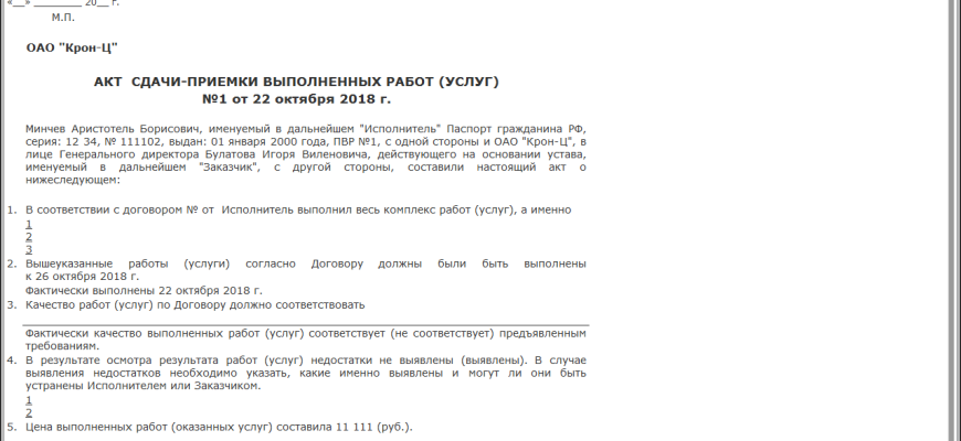 Акт выполненных работ | Проверка качества | Документация | Процесс приема | Контроль исполнения