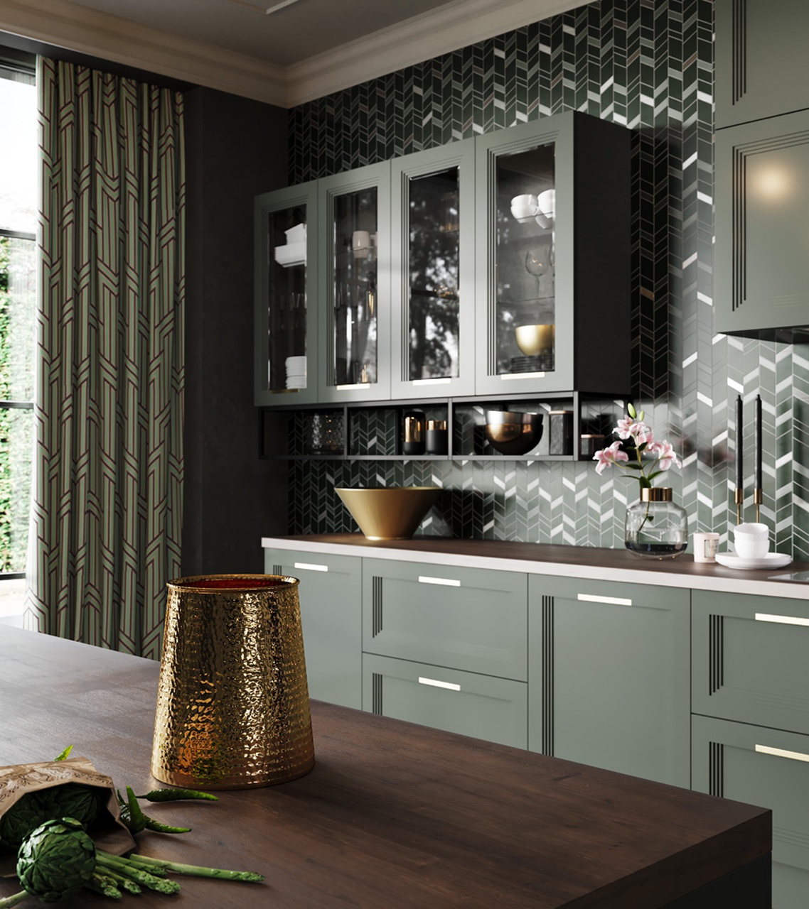 Экспериментируйте с уровнем освещенности. Прозрачные занавески будут хорошо выглядеть в сочетании с плотными шторами, сделав пространство более многослойным. Это поможет разнообразить пространство и создать ощущение тепла, особенно в вечернее время.