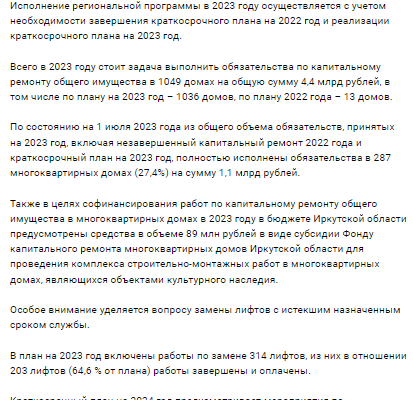 Соблюдение сроков выполнения работ и их качества также напрямую влияет на последующее финансирование. Необходимо внедрить систему контроля за выполнением обязательств подрядчиков, что обеспечит защиту интересов жителей и гарантии завершения работ в установленный срок.