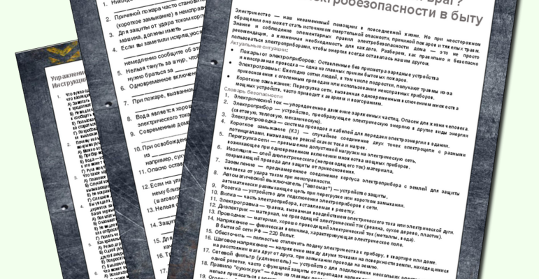 инструкции для работы с электричеством