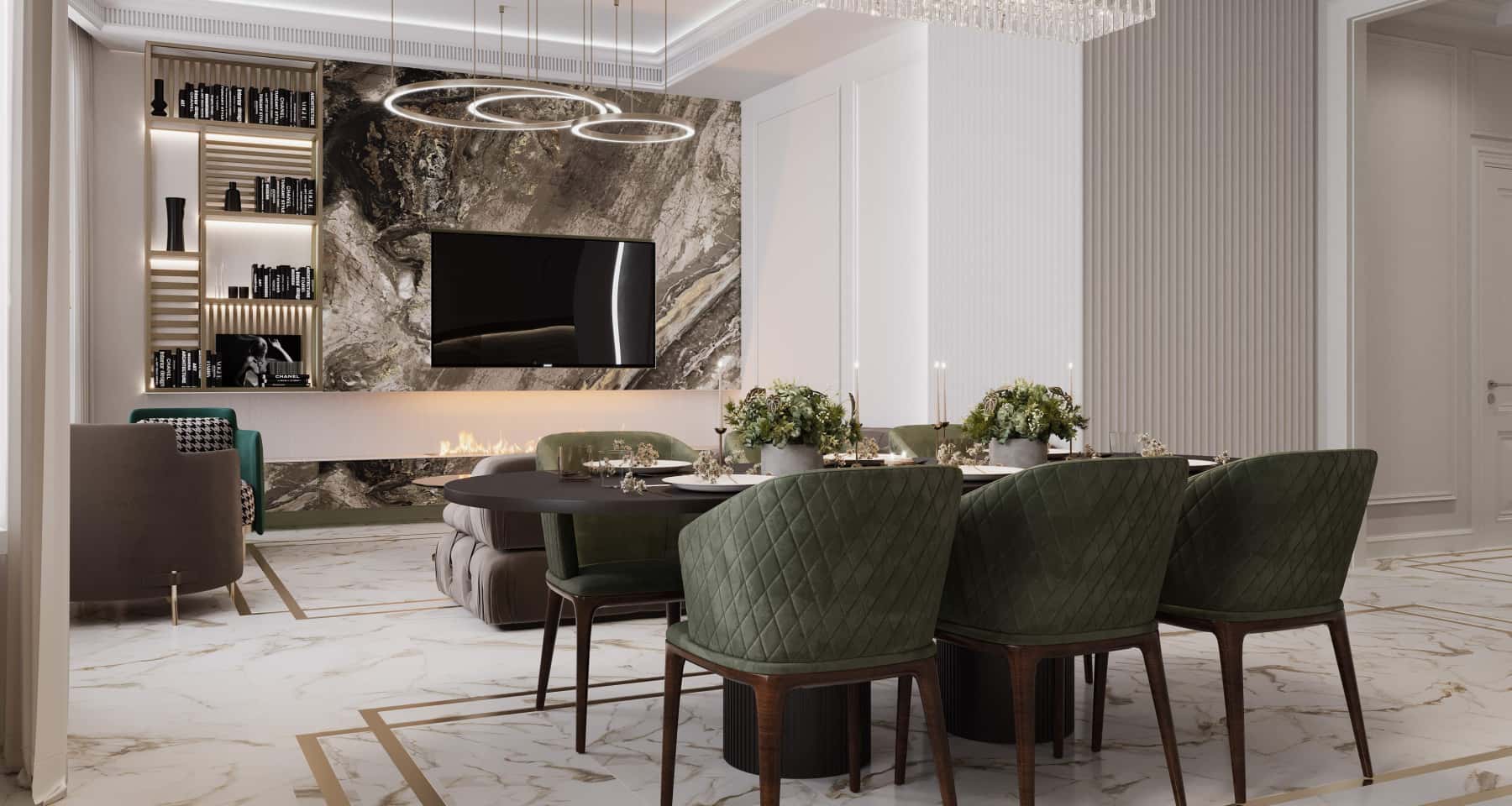 Интегрированные в мебель источники света также могут стать интересным решением. Например, подсветка витрины с книгами или аксессуарами делает их более заметными и привлекательными, добавляя особый шарм.