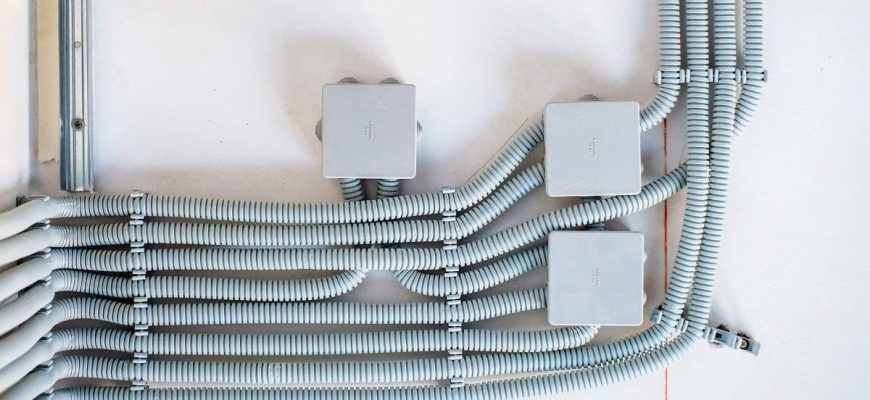 Кабельные трассы важно защищать с помощью кабель-каналов или труб. Лучше использовать негорючие материалы для предотвращения распространения огня. Для монтажа в помещениях с повышенной влажностью обязательно выбирайте специальные кабели с защитой от влаги.