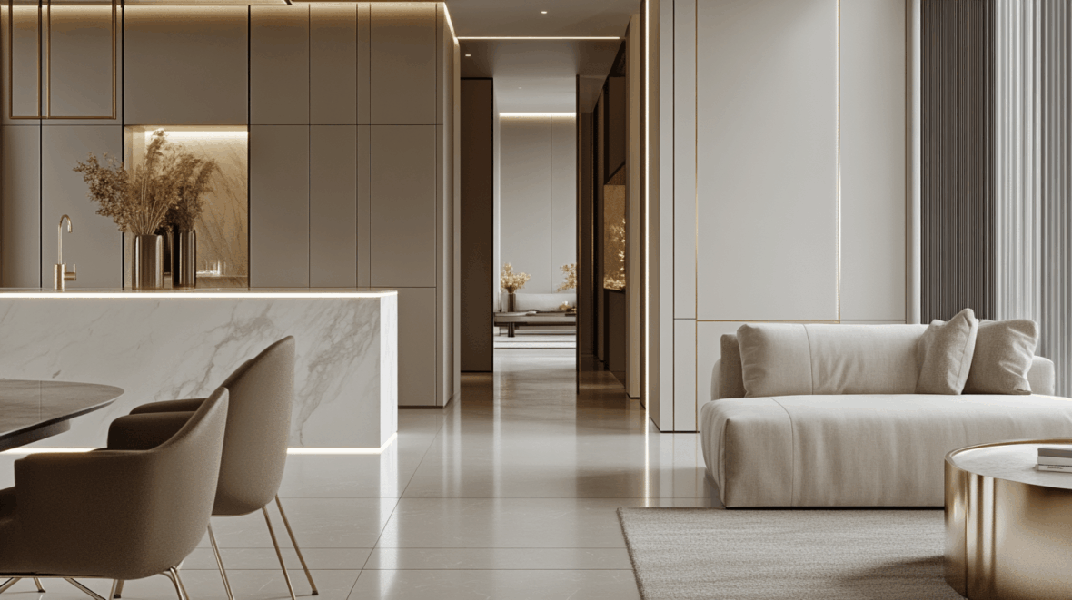 Продумайте освещение: сочетание различных источников света. Используйте местное, общее и акцентное освещение, чтобы создать многослойную световую палитру. Люстры, торшеры и настенные светильники помогут подчеркнуть особенности вашего дизайна и выделить ключевые зоны.