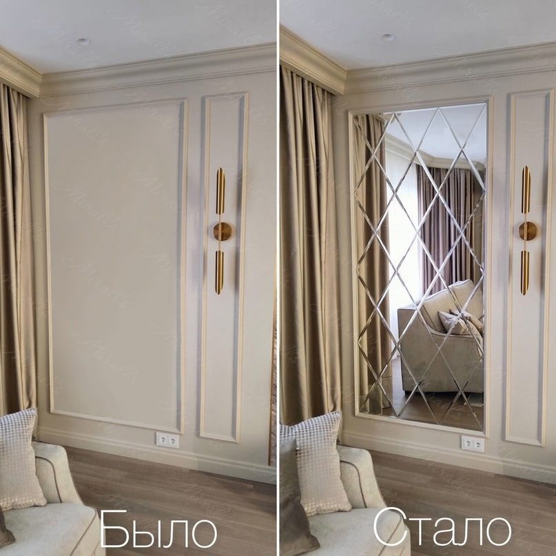Рекомендуем также размещать элемент на стене рядом с проходной зоной. Это создаст эффект глубины и визуально расширит коридор. Важно, чтобы у зрителя была возможность легко видеть своё отражение.